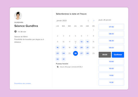 Grâce à Calendly, vos utilisateurs voient directement vos créneaux libres, la durée et la nature du rendez-vous souhaité. Fini les longs échanges d'e-mails ! De plus, bénéficiez de notifications et de suivis automatiques pour vos rendez-vous.